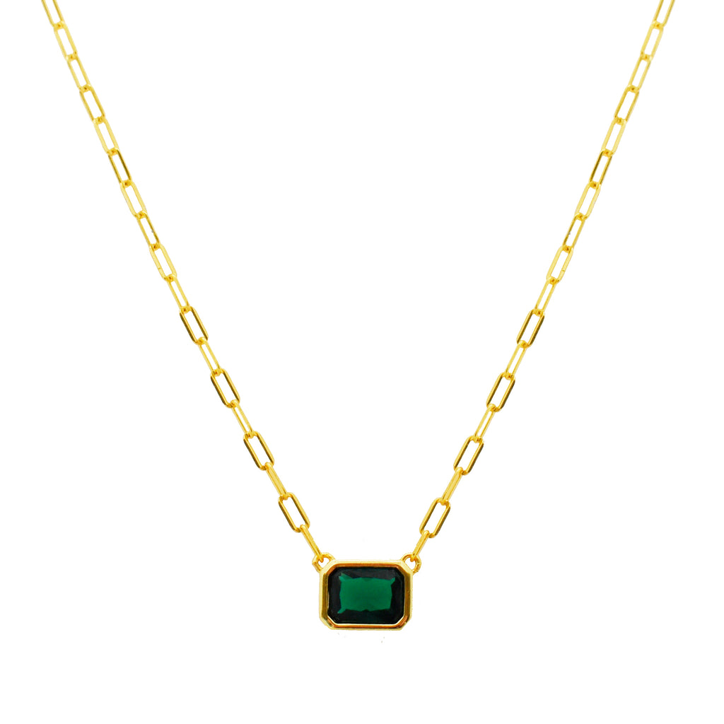 Necklace with rectangle green cubic zirconia