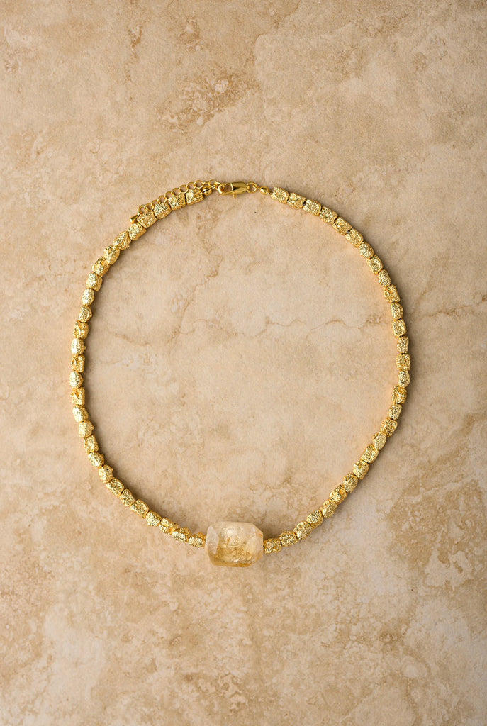 MUSE features our signature crushed-gold beads paired with a glowing citrine centrepiece — a symbol of joy, confidence and feminine energy