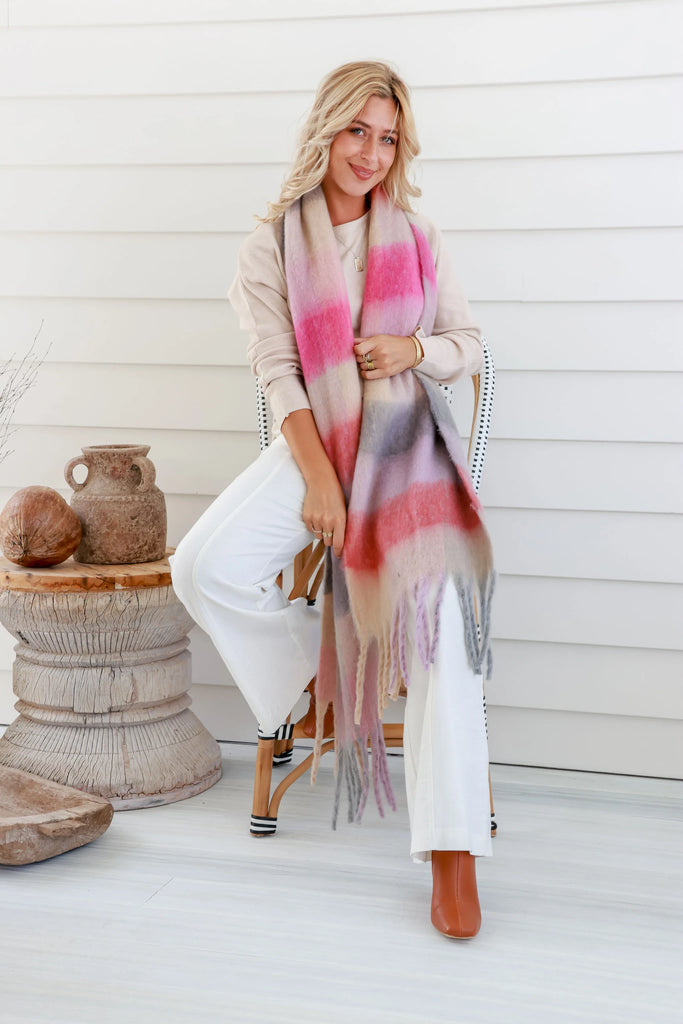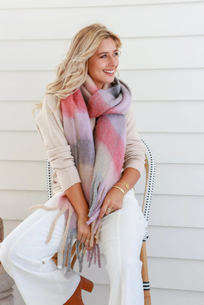 The Pink and Lilac Scarf is the perfect addition to your winter outfit