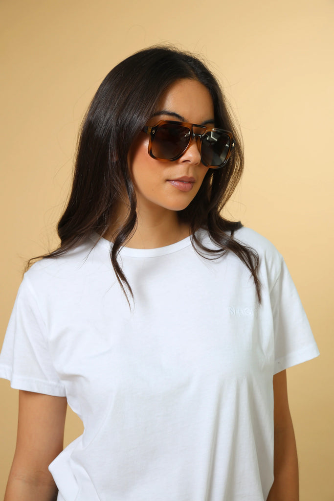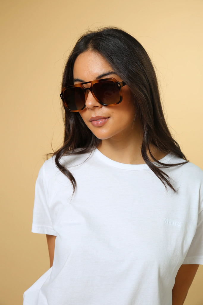 The Rita Sunglasses in Tort + Black are by Stella and Gemma