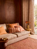 This peach linen cushion features our hand-painted Bold Stripe design, offering a subtle nod to 1960s pop colour