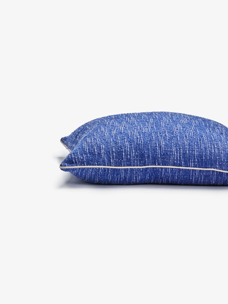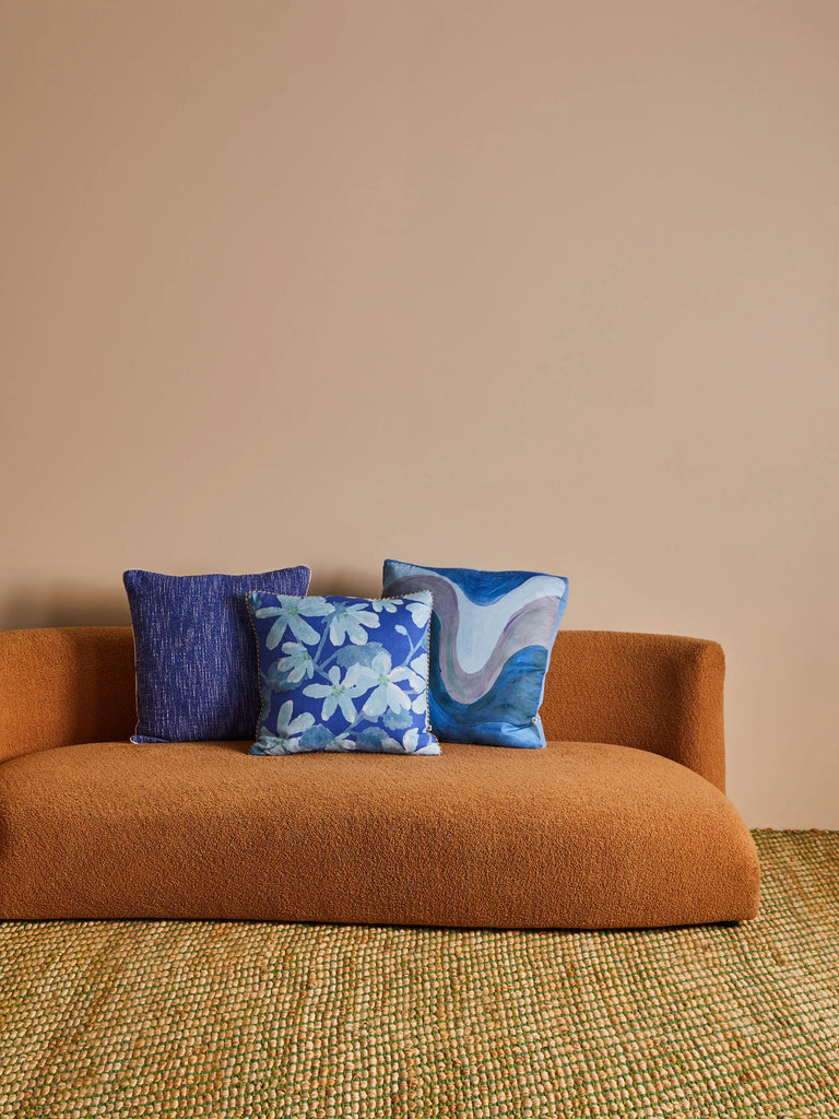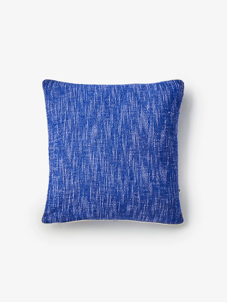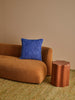 A vibrant cushion in saturated blue, bringing bold colour and rich knotted cotton texture to your space