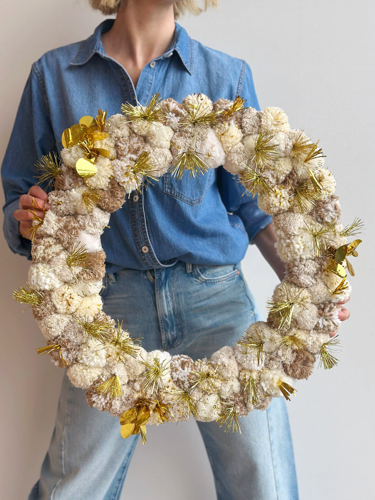 Traditional Natural and Gold pom poms with gold tinsel sparkle