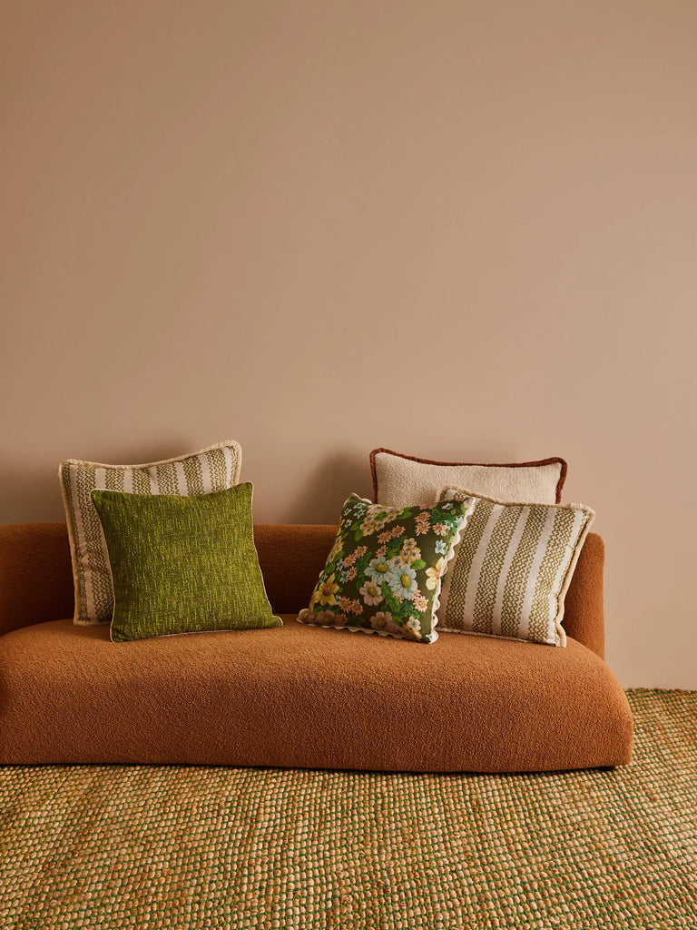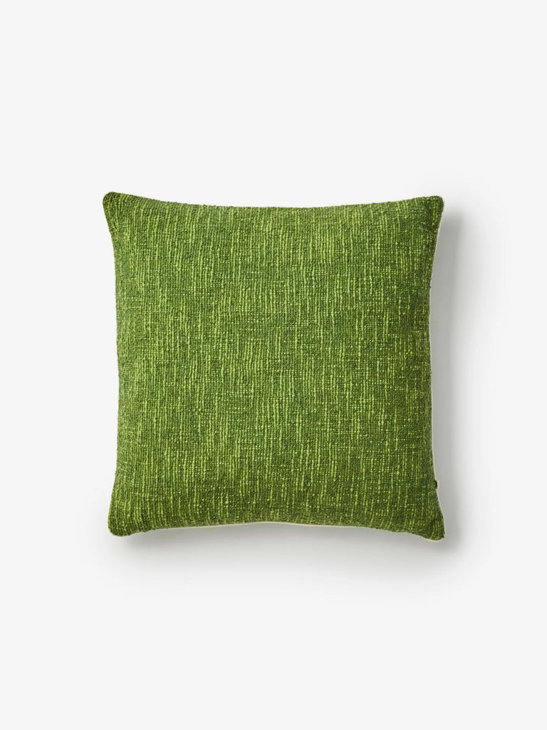 A vibrant cushion in an earthy green, bringing bold colour and rich knotted cotton texture to your space
