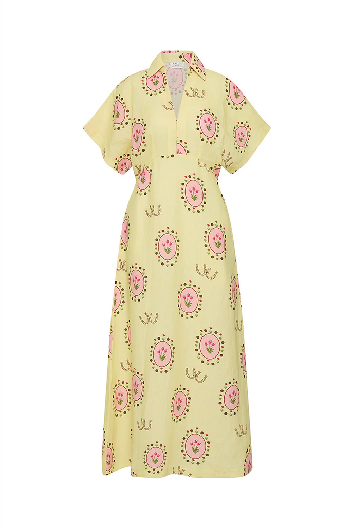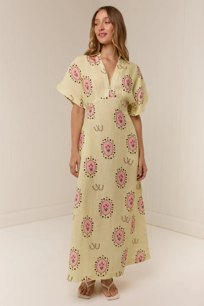 The Jasmine Dress is crafted from a Premium Linen, printed in our exclusive Savanna Tile print