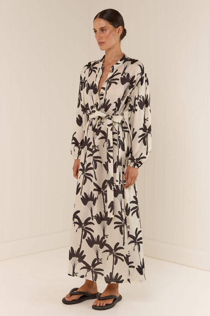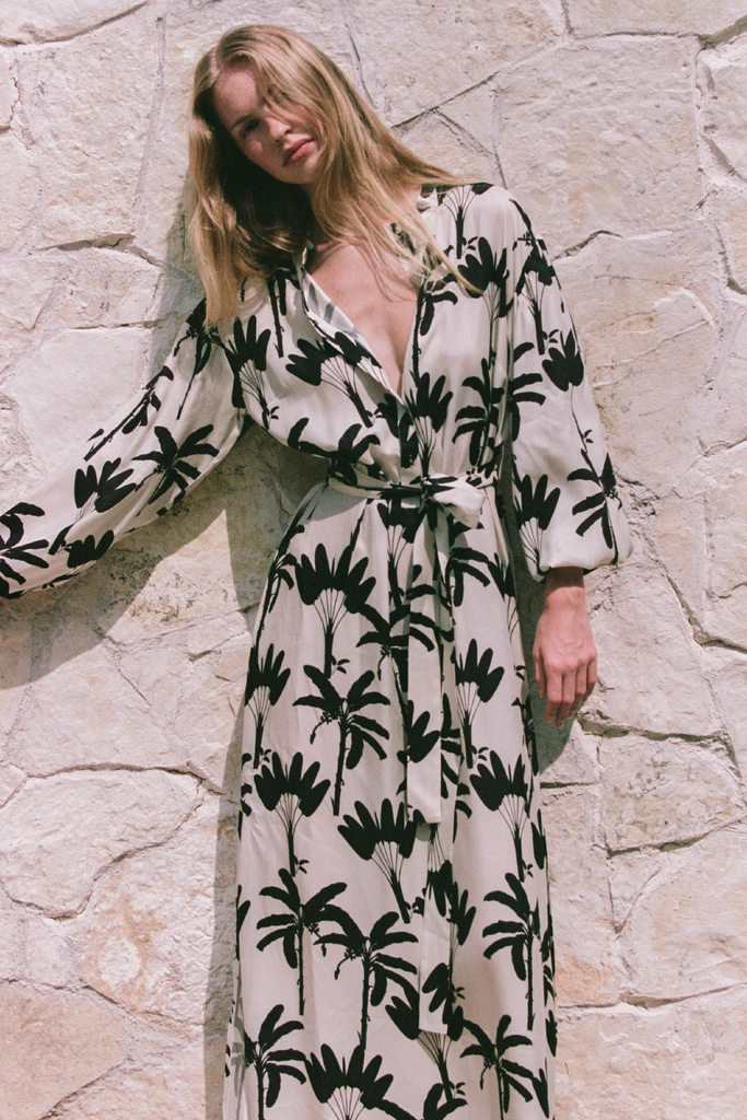 The Rio Dress in our exclusive Madagascar Palms print is crafted in a premium Cupro for a lightweight and silky finish