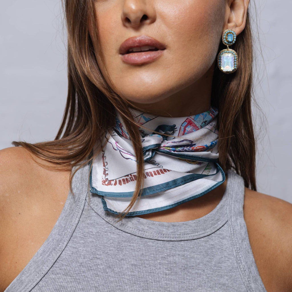 Bright Gem and bead earrings in blue tones