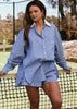 The Lounge Shirt in Blue Pinstripe is part of the Cowboy Tennis Club Collection by Whitney Spicer