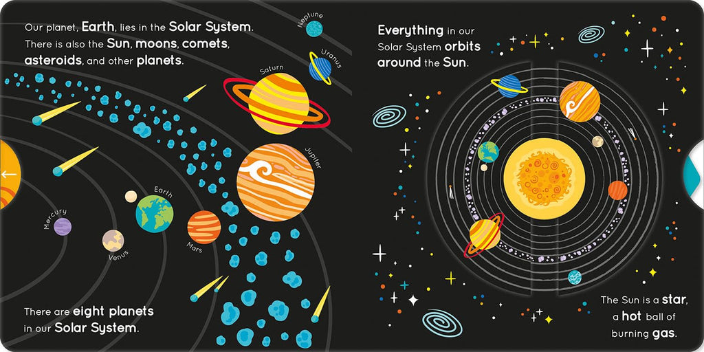 Explore the Solar System and space with this push, pull and slide book!