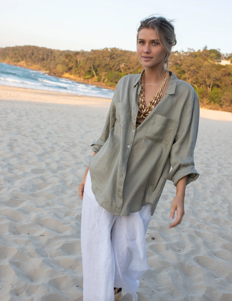 The Boyfriend Linen Shirt in Biscuit is part of the Honeymoon Collection by HUT