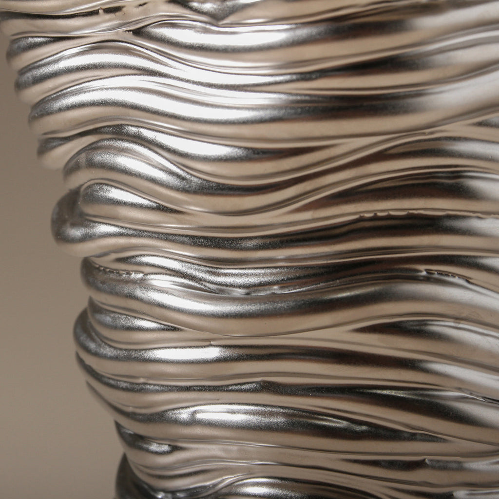 With its wavy, reeded contours and fluid design, the Cascade Vase in a nickel finish captures the essence of flowing water