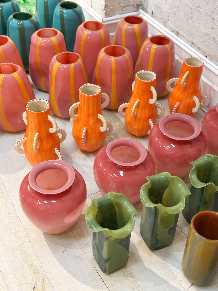 Handcrafted with a smooth, sculptural form and a vibrant glaze, it’s designed to make a statement, perfect for showcasing lush arrangements or standing beautifully on its own