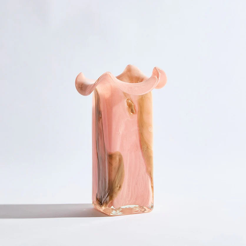 Handcrafted from high-quality glass, each piece features soft, painterly swirls of colour, framed by a dramatic, sculpted rim