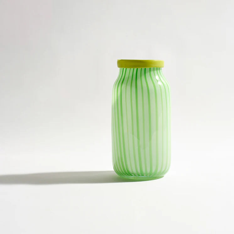 The Frances Vases are where form meets function in exquisite harmony. Featuring a subtle tonal pinstripe design complemented by a contrasting solid-coloured rim, each vase is made entirely of coloured glass and is as practical as it is stunning. Available in three elegant colourways, these vases are ideal for effortlessly arranging fresh flowers—simply unwrap and display. Sophisticated and versatile, the Frances Vases add a refined touch to any room.