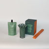 A Deep forest green and jade - feel a rainforest downpour cascading over tropical flowers. Immediately cool, sophisticated and yet hyper natural .. The scent is full of white flowers, frangipani, a breeze through shaded trees. It's soft, fresh and sensual. Every time I inhale, I am transported to unwind somewhere lush and quite. It's dreamy. - Ben David