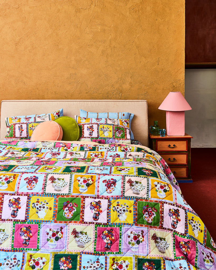 Double up with our Kip&Co x Margaret Preston Margaret's Vase Organic Cotton Quilted Bedspread for a room in full bloom