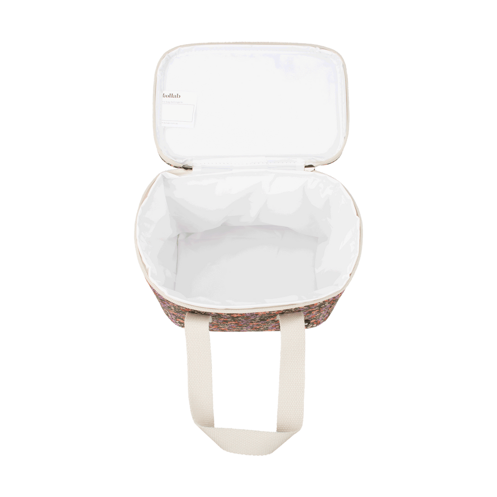 Lunch Bag features reinforced, durable recycled cotton look handles.