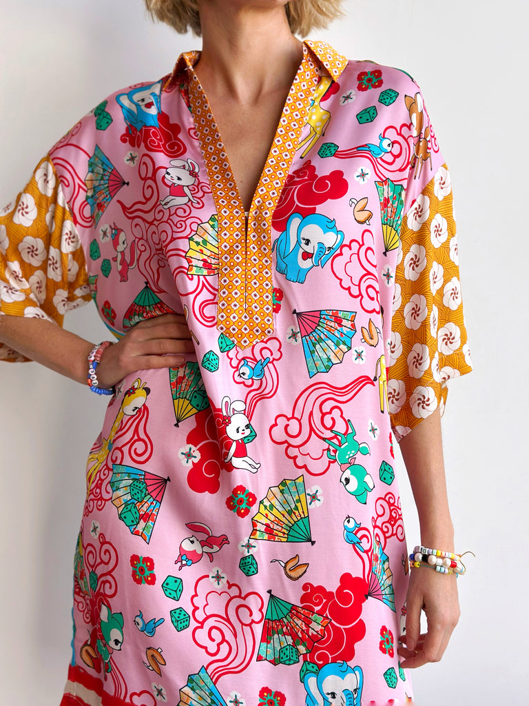 The Nancy Placket Mini Dress in Lucky Me print is by ME369