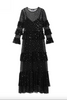 In a gorgeously lightweight mesh with tiered ruffle detailing along the bodice, sleeves and hem