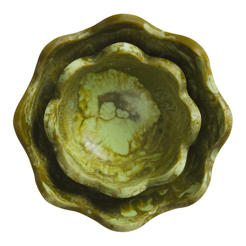 With a nod to mid-century design, this resin bowl fuses form and function via its wavy edges and smooth texture