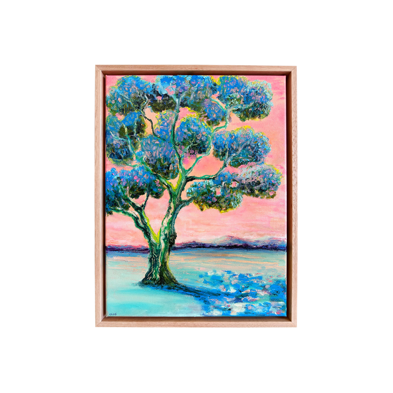 Framed in a floating oak frame