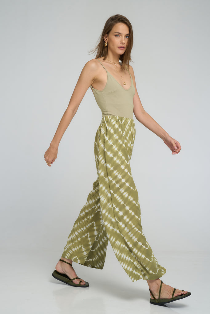 The Flynn Pant in Celestial Tie Dye Matcha Green is by Lilya