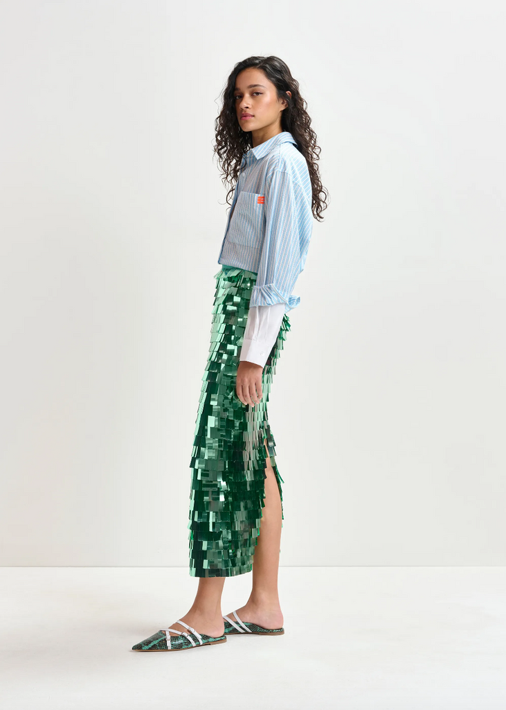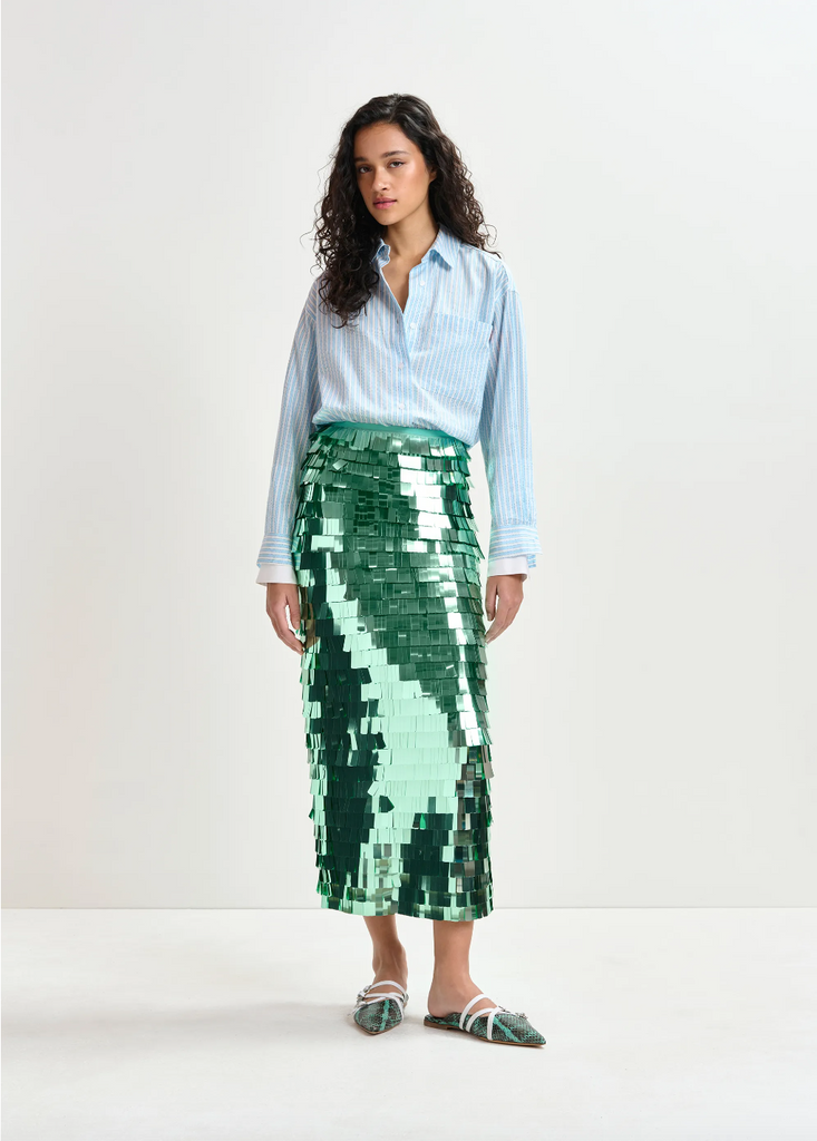 The Ihoed Green Sequin Pencil Skirt is by Essentiel Antwerp