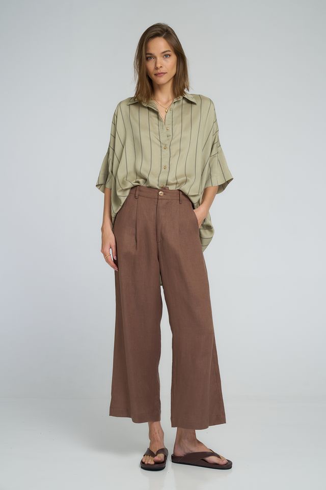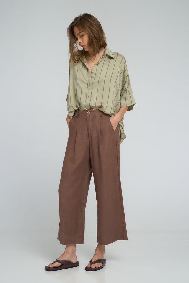 Made from breathable linen in a soft sand tone, they’re cut with a flattering high waist and an easy cropped wide-leg, that feels both timeless and modern