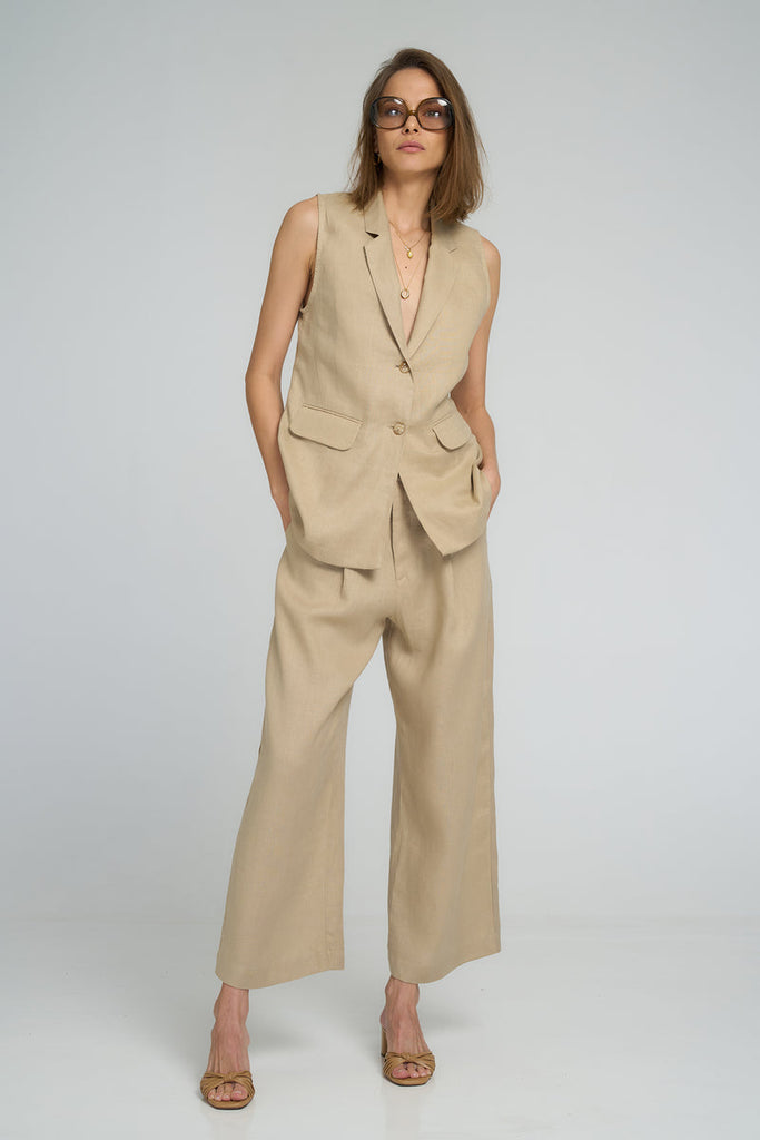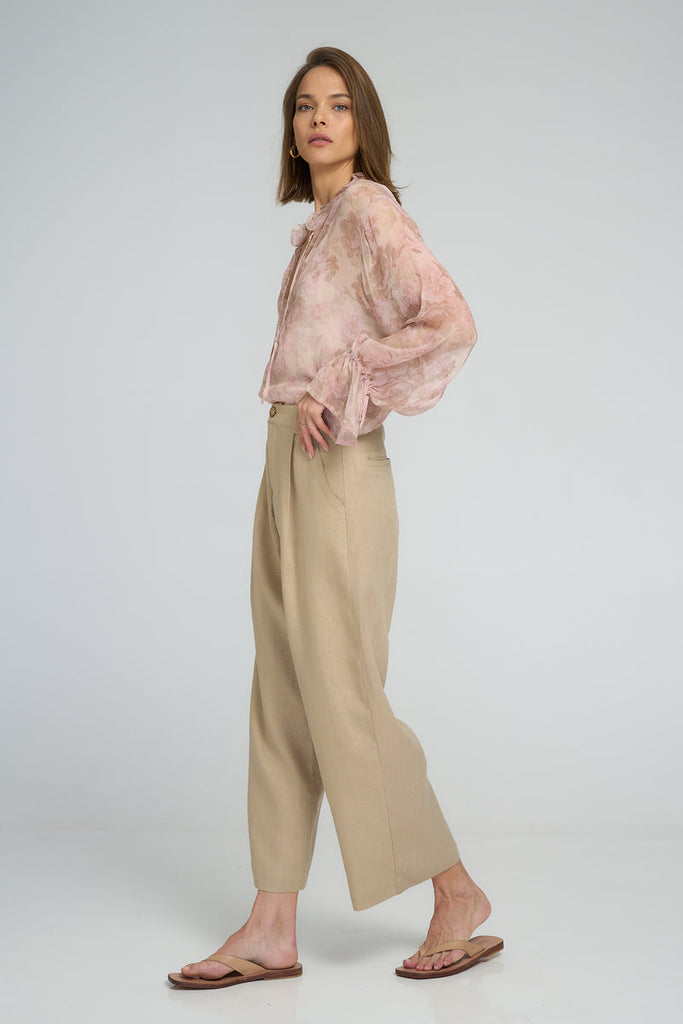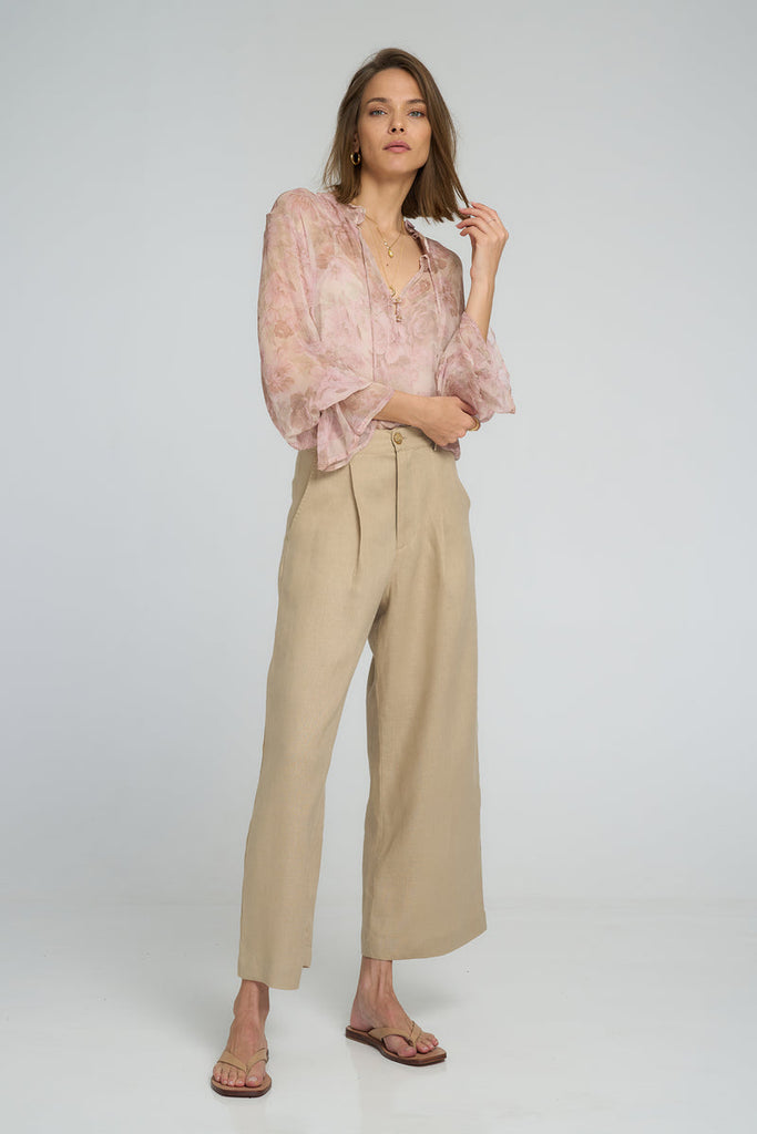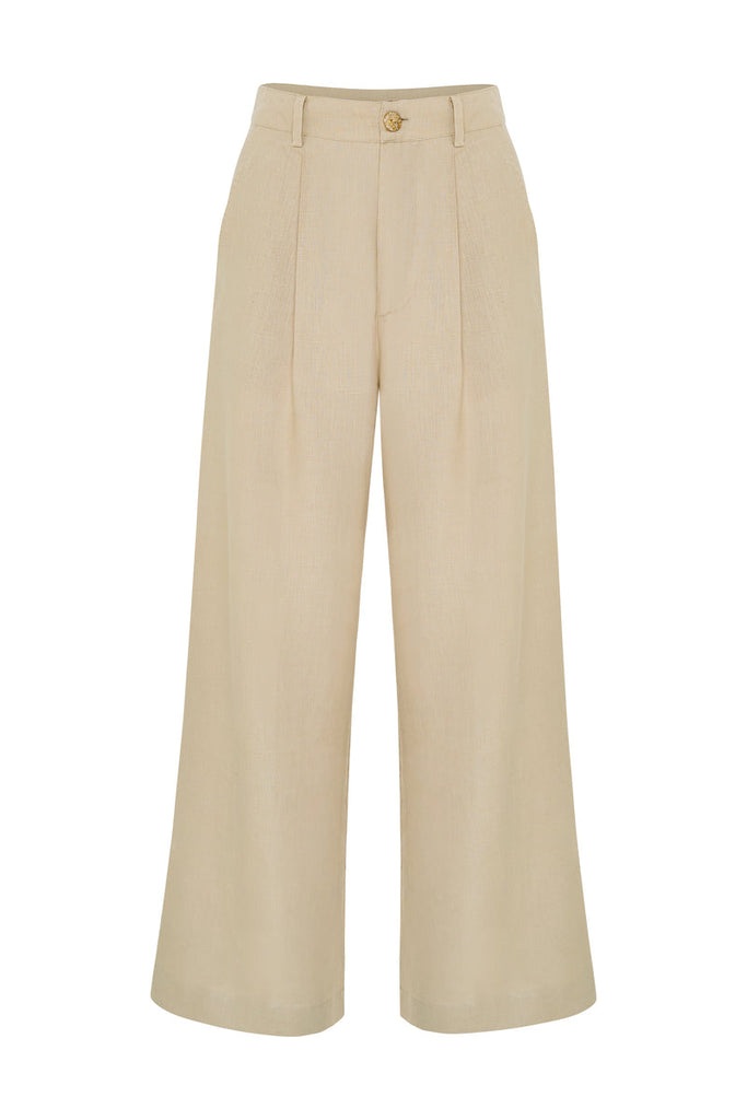 Made from breathable linen in a soft sand tone, they’re cut with a flattering high waist and an easy cropped wide-leg, that feels both timeless and modern