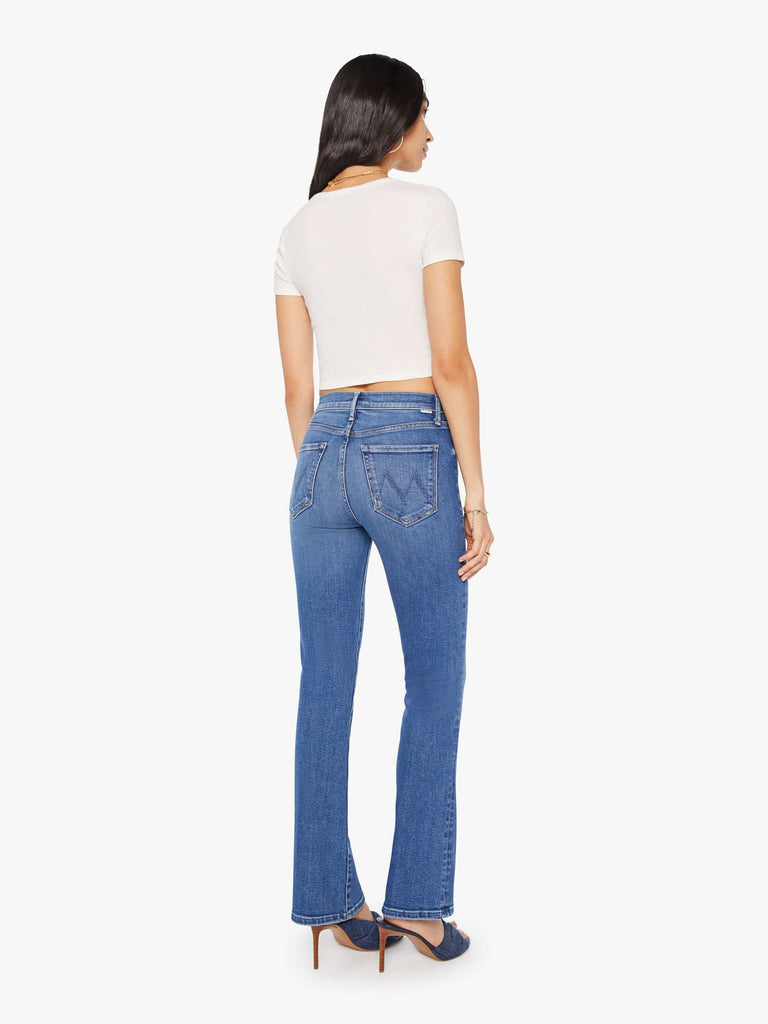 Narrow flare jeans with a mid rise and a long 31-inch inseam with a clean hem