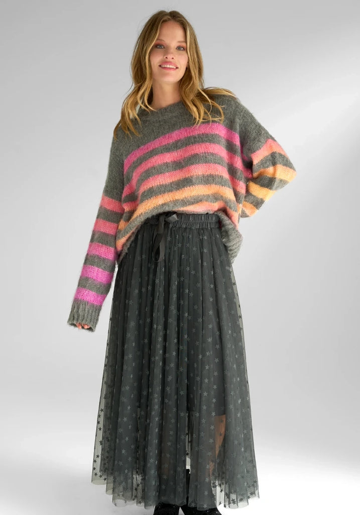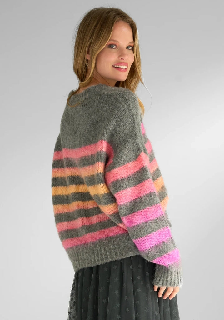 The Stripe Knit Pullover in Dark Grey Stripe is by Miss Good Life