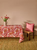 Sweeping painterly red florals bloom across this linen tablecloth, bringing romance and energy to your table
