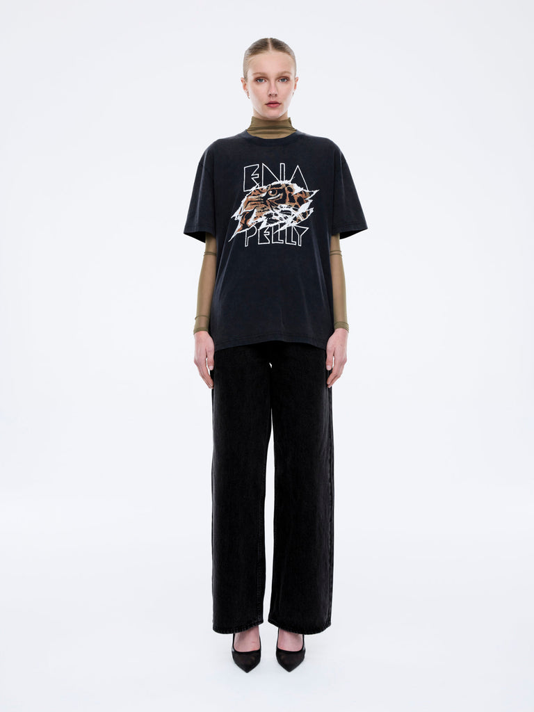The tee features a large scale animal inspired print to the front and our monogram subtly embroidered on the back beneath the collar