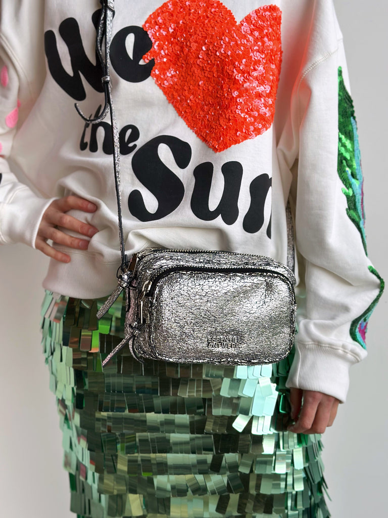 Made from a lustrous crinkle-effect faux leather, this shoulder bag is sized to fit your daily essentials with two zipped compartments
