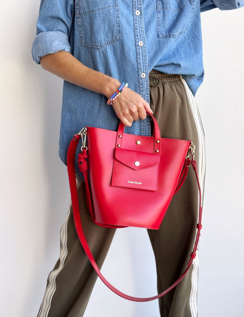 The small leather handles add a finishing touch to this timeless model