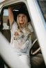 A layered take on the classic raglan — soft lace sleeves meet a body detailed with hand-painted roses and a skull motif