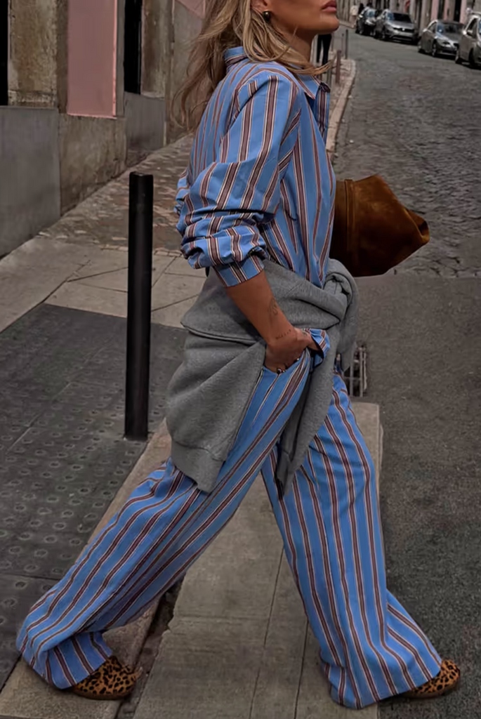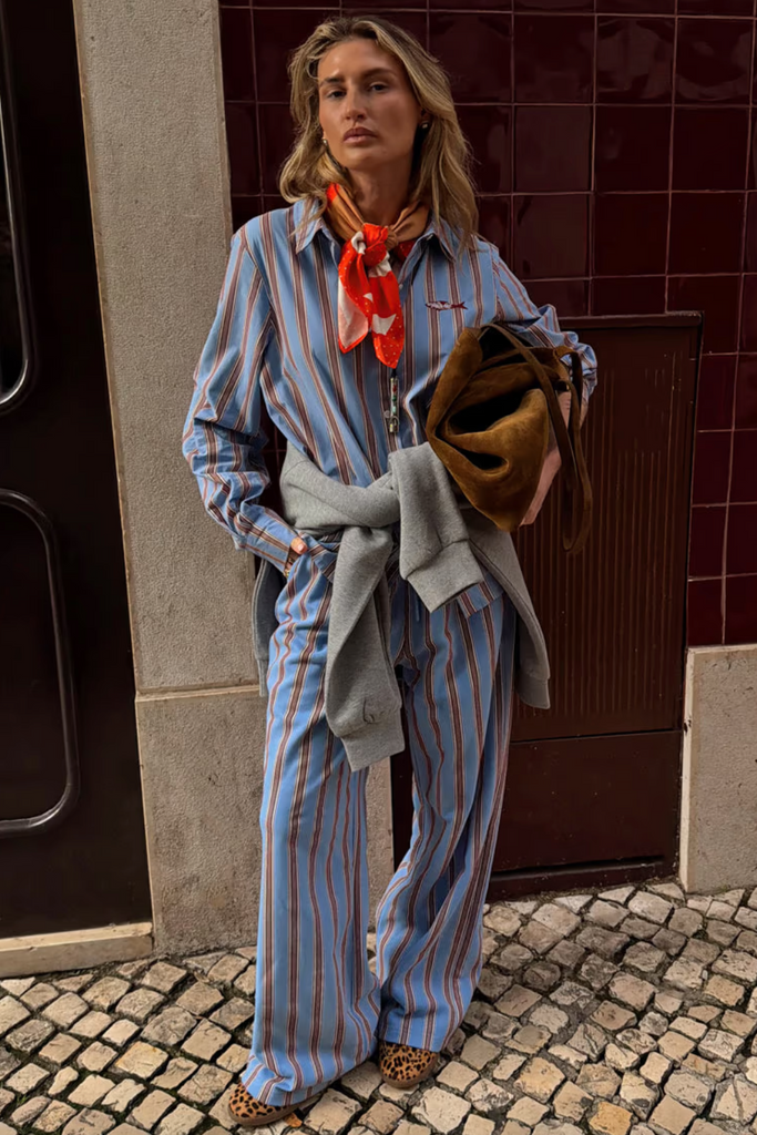 The Blue Cotton Stripe Jogger is by Never Fully Dressed