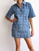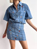 A fitted denim-look skirt with a patchwork feel, true to size with a brass-look rear zip for a touch of vintage utility