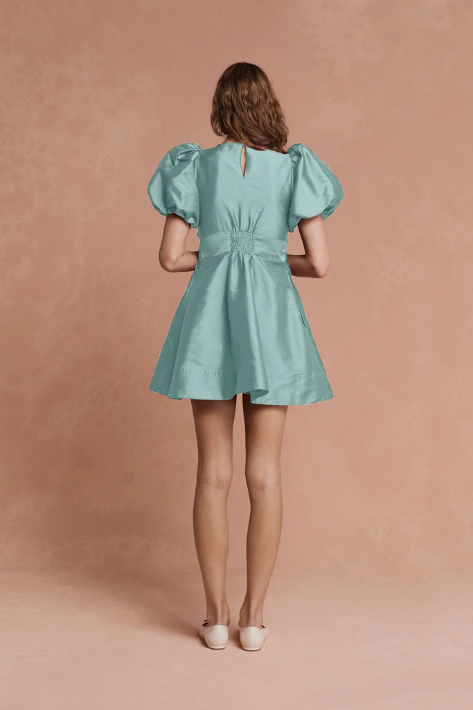 The Iris Mini Dress in Sage is by Lovaan