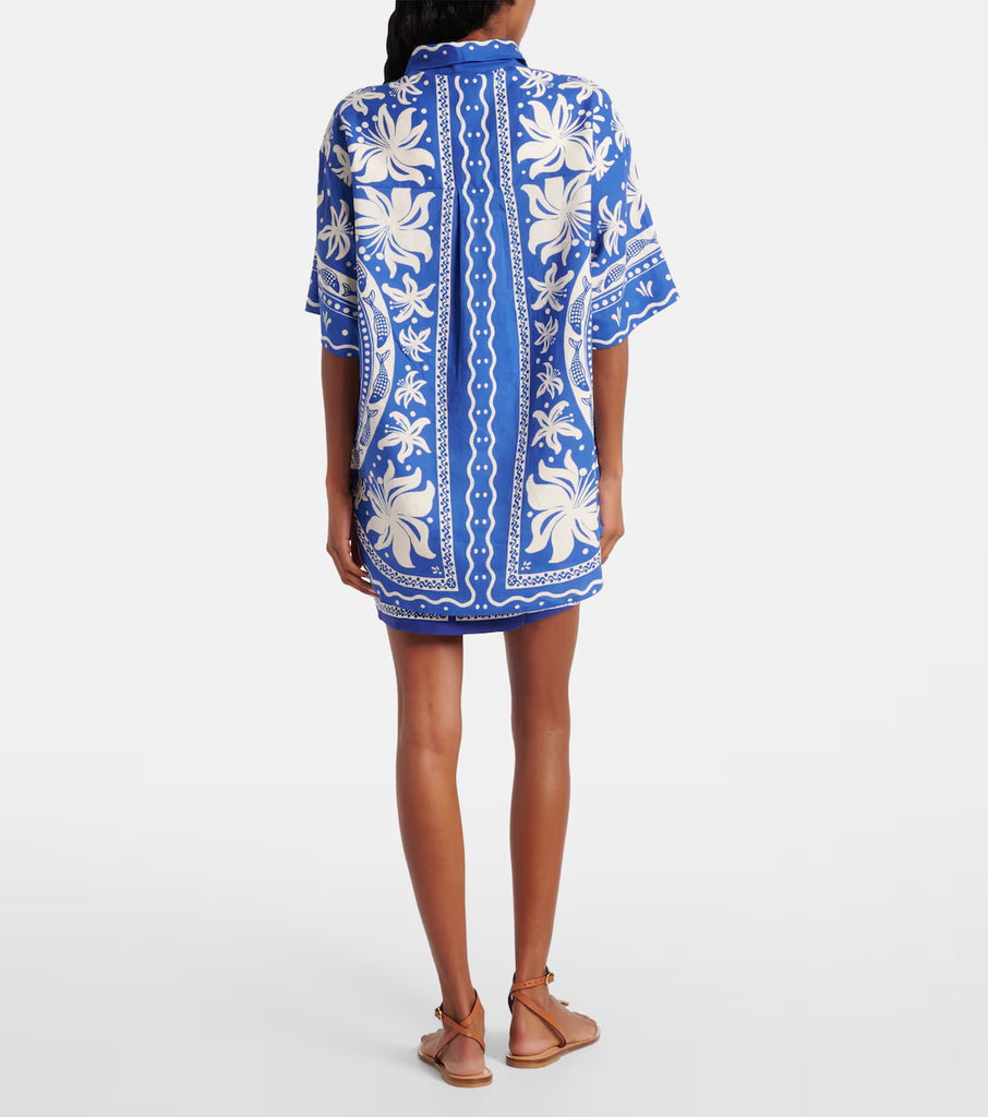 Made from a printed linen blend, the Ocean Scarf shirt has a buttoned front and short sleeves