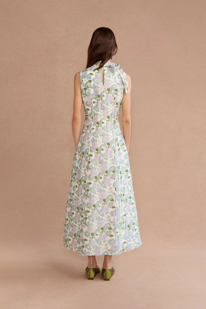 Featuring soft, flowing lines and a delicate neck tie detail reminiscent of the Hollie, the sleeveless Stevie Midi exudes refined elegance