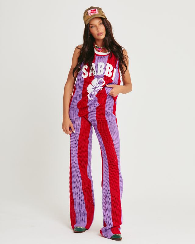 The Knit Stripe Beach Pants are a striped, stretchy, open-knit dream, serving up comfort, colour and that effortless Sabbi attitude