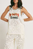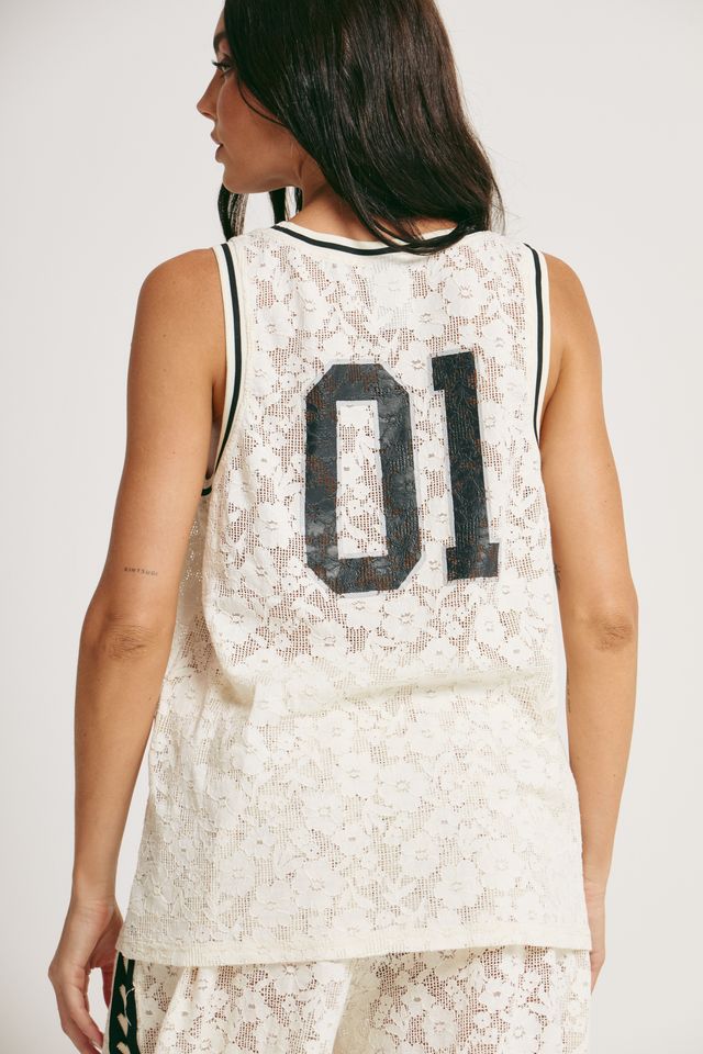 The Be Youtiful Cream Lace Singlet brings metal-band energy to the streets. Think retro rock vibes, electric Sabbi logo and sheer cream lace that teases just the right amount.