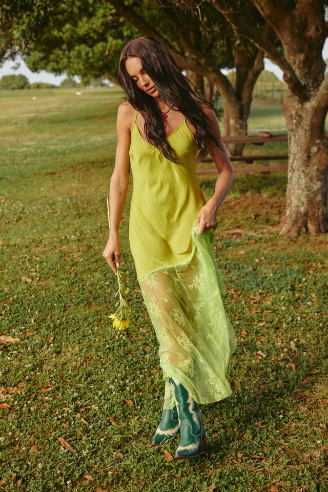 The Lace Maxi Dress in Chartreuse is part of the Sunflower Fields Collection by Sabbi